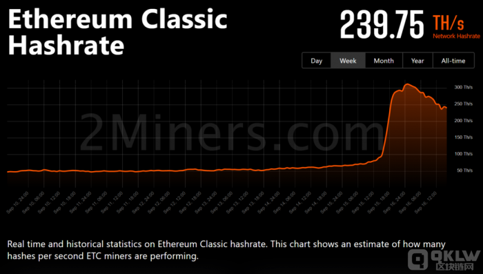 而根据2mines统计其他竞争币种ETC、RVN、ERGO等皆出现大量算力大幅增长的现象,其中以ETC增长幅度最为惊人,自合并前的约为50TH/s,暴增至239.75TH,可说是约吸引了24%的以太坊挖矿算力集中至ETC。