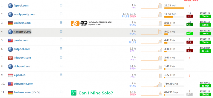 而昨日ETHW分叉官方也在分叉前正式开启多个测试网,而主网则是等到了昨日晚间10点才公开主网正式版节点程式,而今日官方也不断宣传其支持矿池,据miningpoolstats数据显示,当前已有f2pool、woolypooly、2miners、nanopool、poolin等矿池支援: