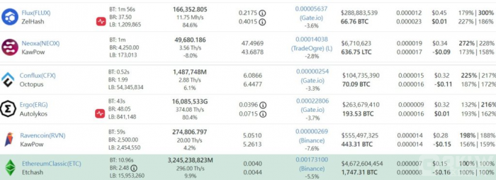 以太坊合并后ETC币、RVN币、ERGO币算力飙升,ETHW币算力如何?以太坊昨(15)日于北京时间14:43成功完成合并,从工作证明(PoW)转换至权益证明(PoS),堪称历史性的一刻,而以太坊矿工也自昨日起正式被淘汰,大量算力逃窜至其他币种、算法,以及宣称代表以太坊矿工利益的分叉ETHW。