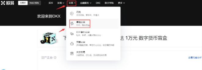 第一步:点击欧易交易所官网,新用户可以直接点击注册进行交易买卖。点击“交易”--“基础交易”进入交易页面