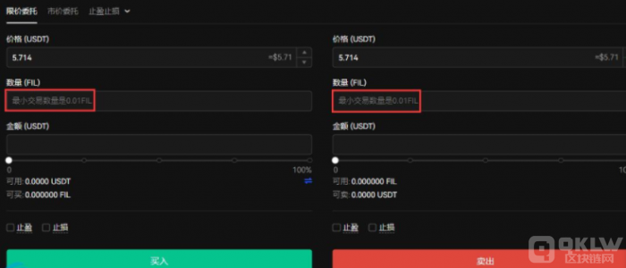 第三步:填写购买数量,注意最少买入数量为0.01 FIL。
