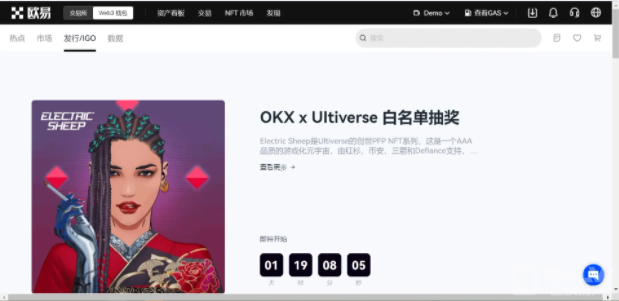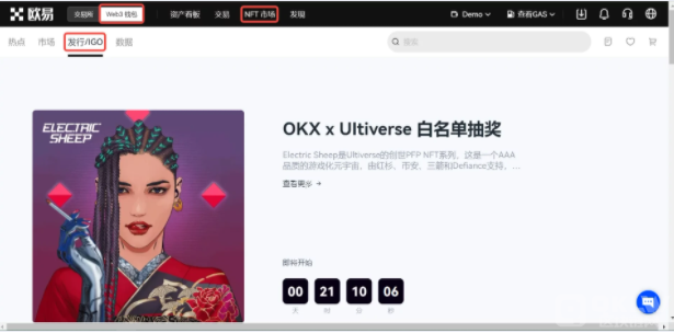 1、登录欧易官网,点击首页上方导航栏【Web3钱包】—【NFT市场】—【发行/IGO】进入一级市场。您可以看到推荐、热门及历史活动,进一步了解活动详细信息。