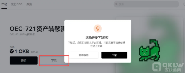 6、如果您想下架这个NFT,在该NFT详情页,点击【下架】,即可在弹窗中确认下架。