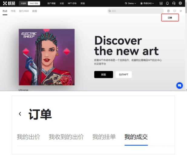 4、成功购买的NFT,可以在【订单】-【我的成交】内查看。